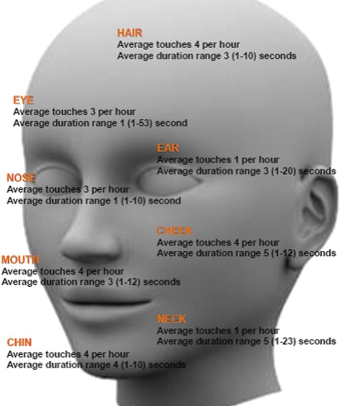 I have looked at some research and above is a useful diagram with an average number of face touches observed in a 60-minute period.